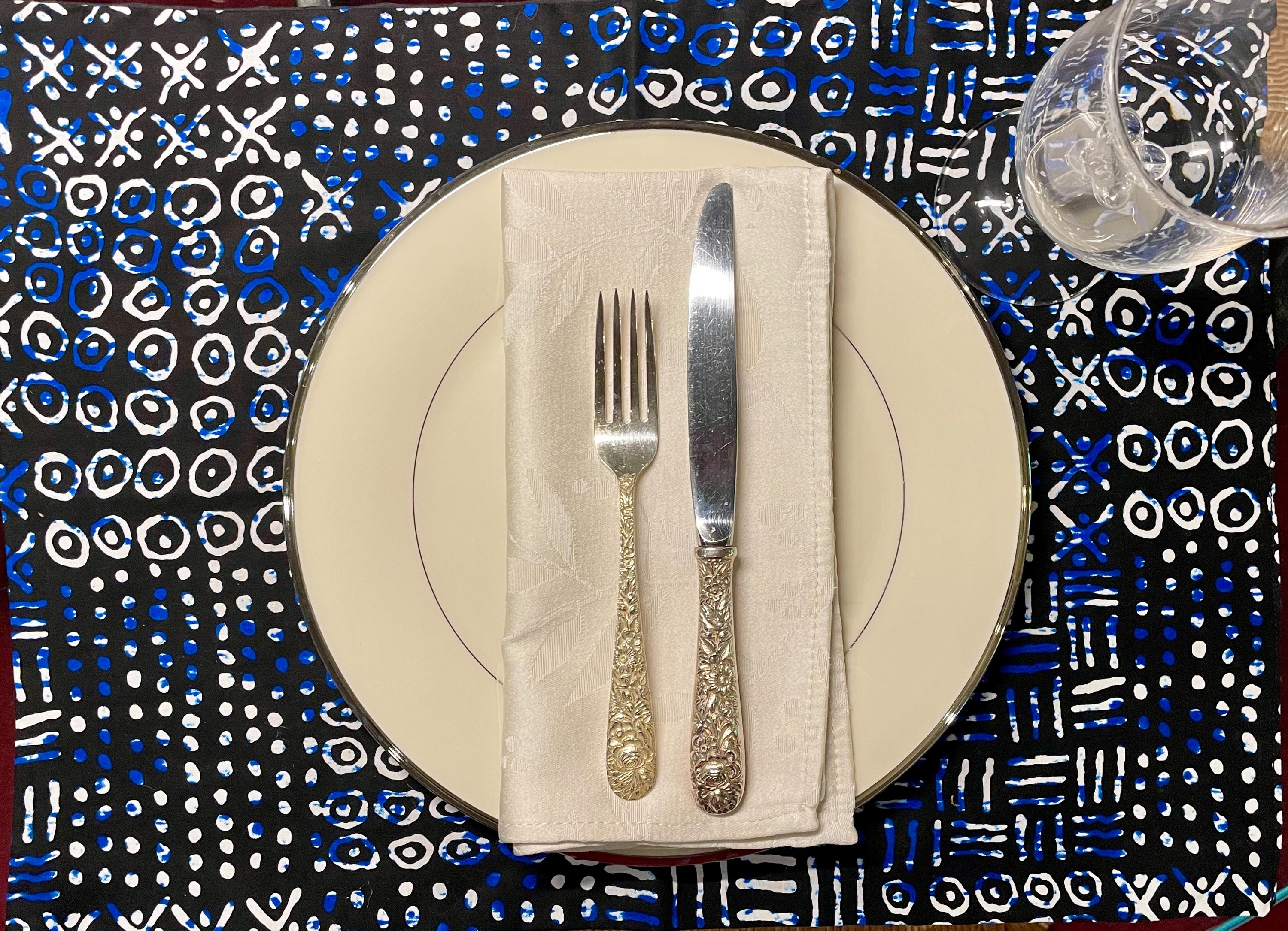This set of 6 handmade placemats is crafted from vibrant East African Kitenge fabric and lined with durable black cotton. Part of our Chakula Chema (“enjoy your meal” in Kiswahili) collection, each piece brings color, culture, and impact to your dining space.