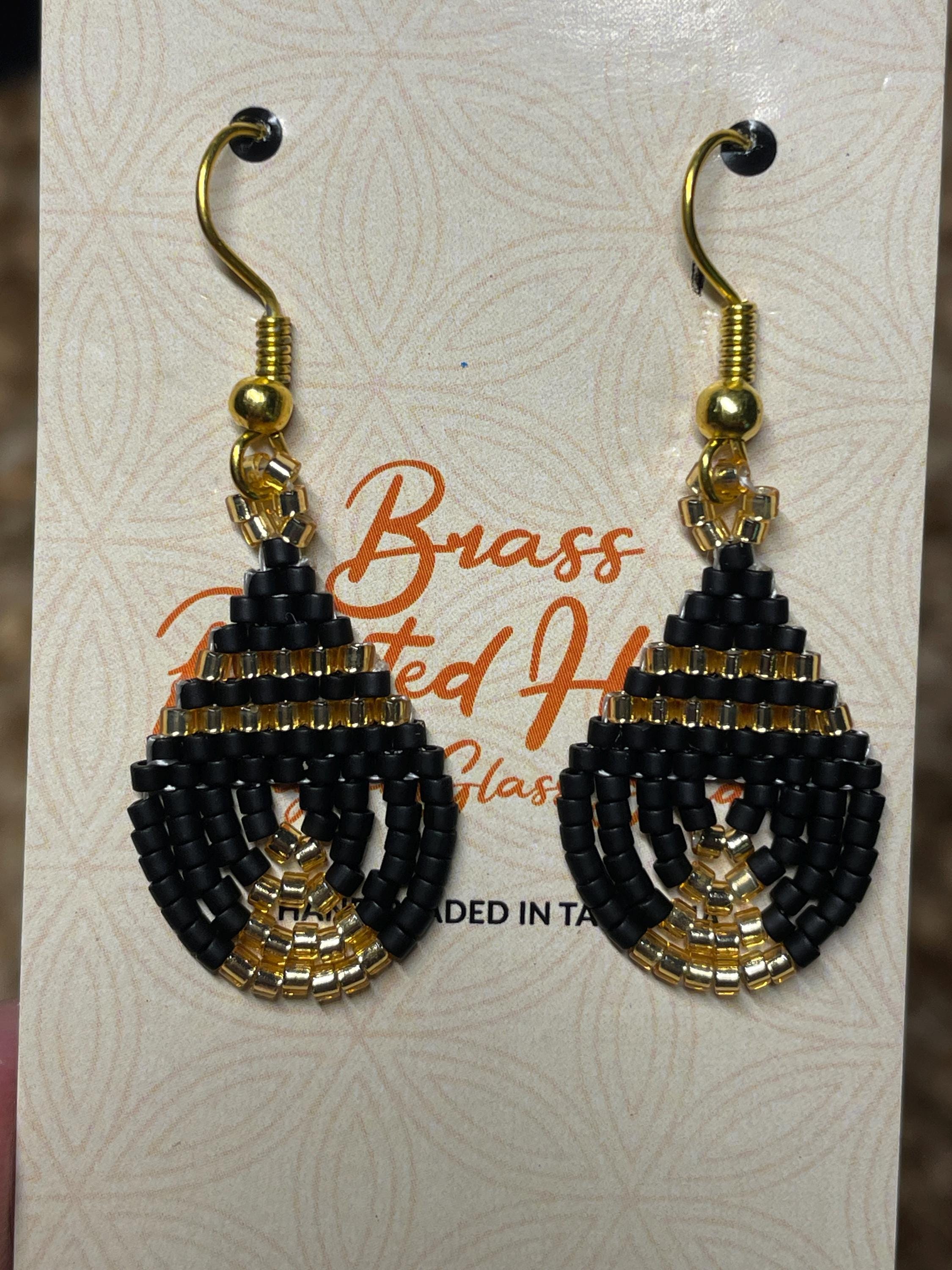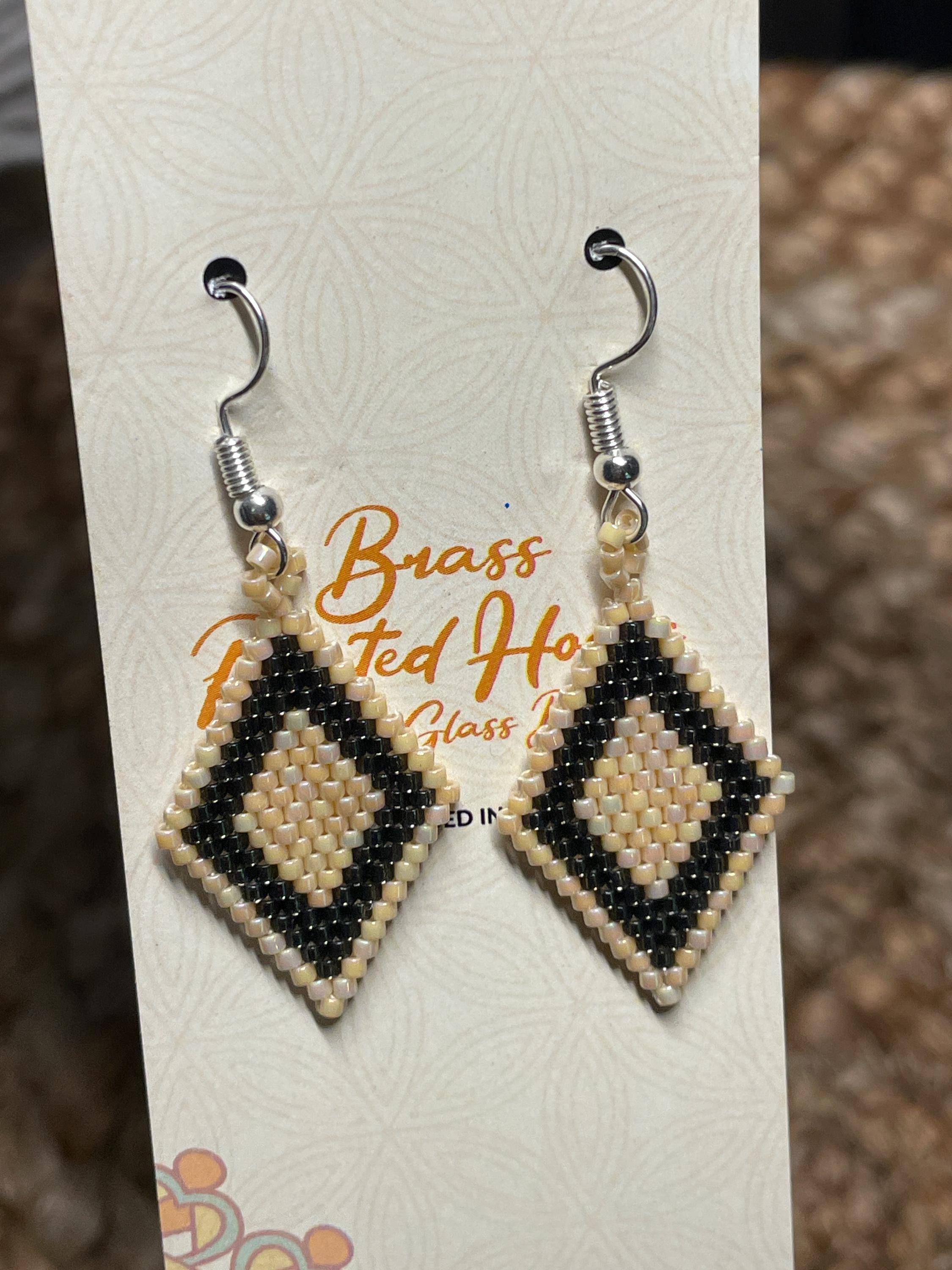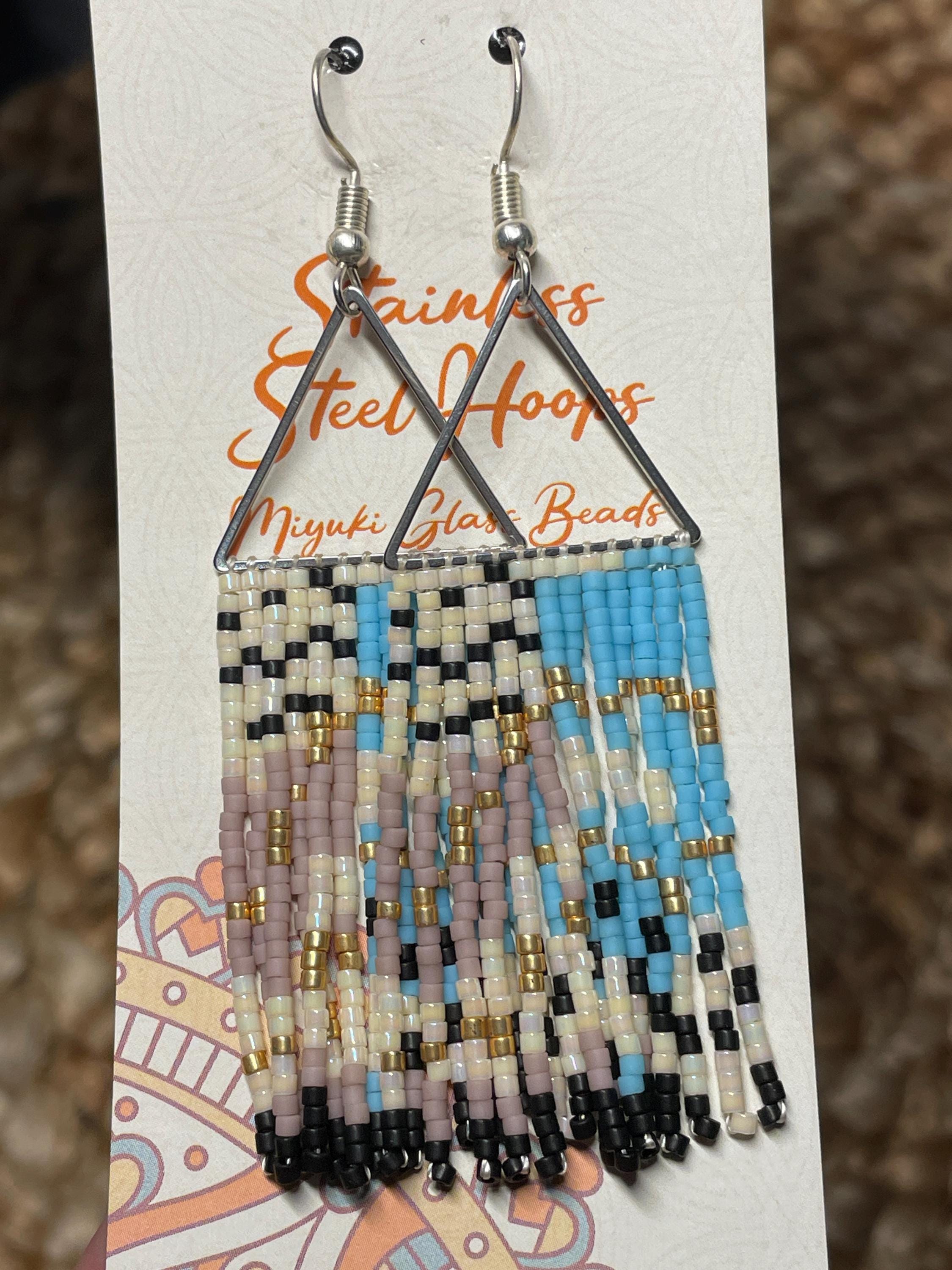 •	Materials: Glass seed beads, hypoallergenic hooks